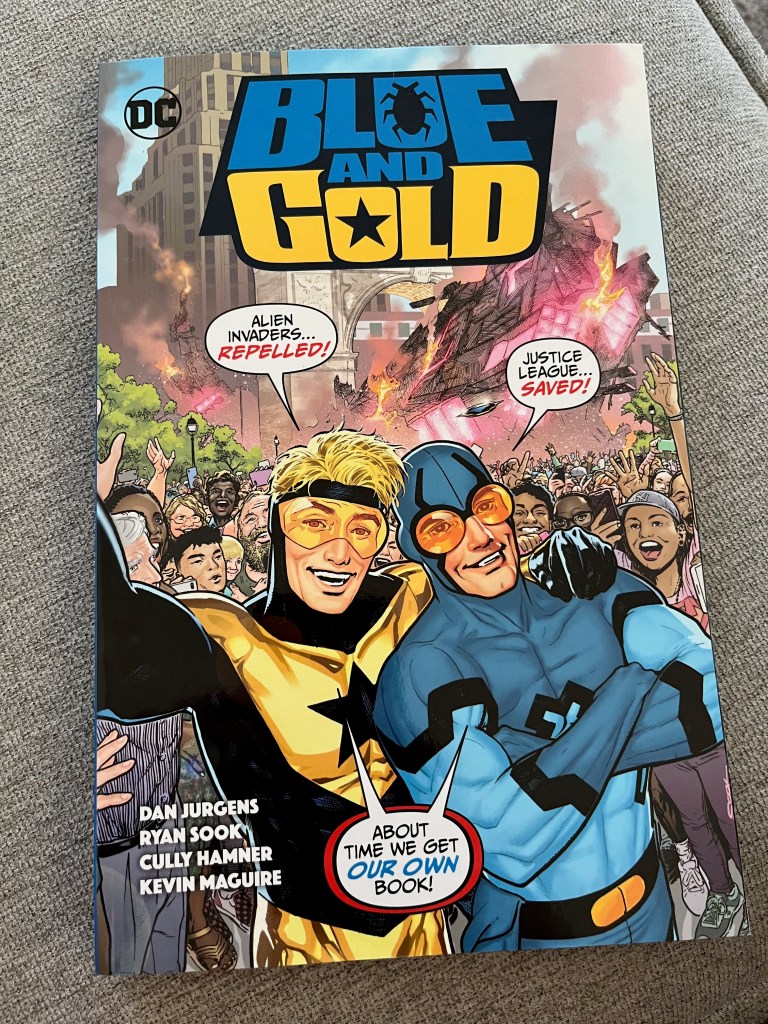 And three that I haven’t read before. Blue and Gold (my current read) is about Booster Gold. The other two are The Authority, and I have no idea what I’m in for when I start those, but I’m excited!