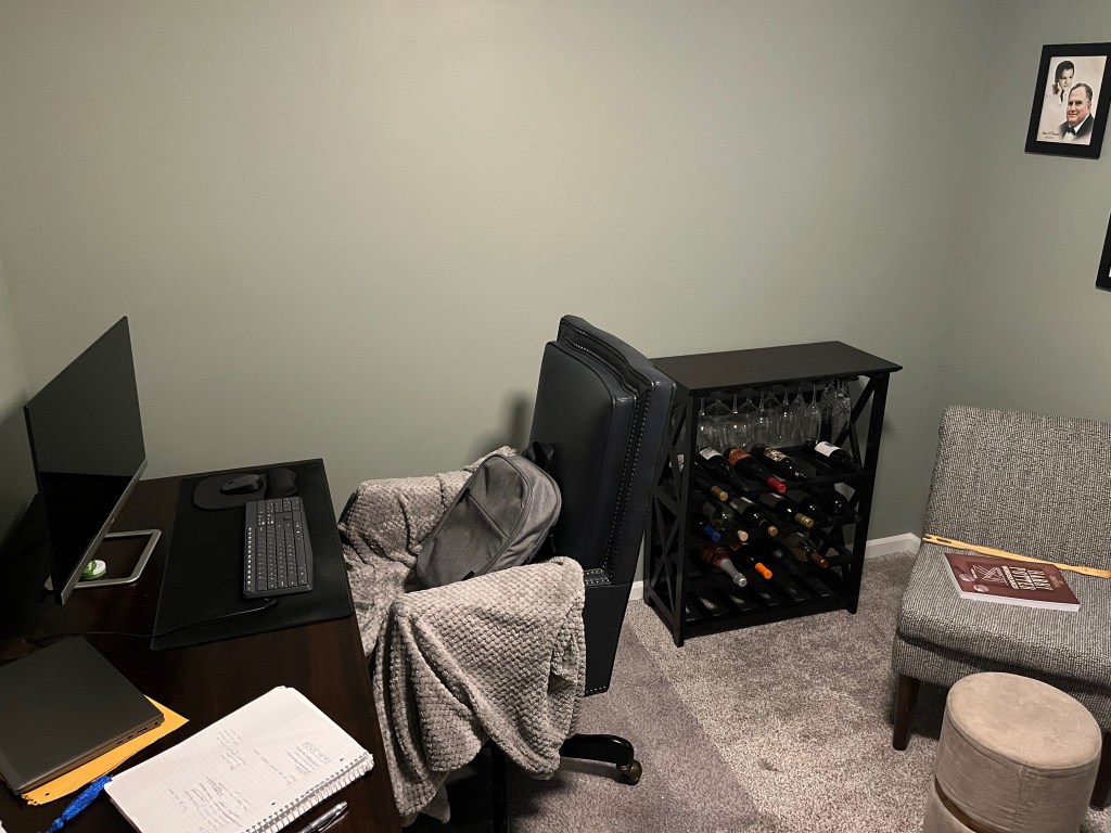 I really like my new set up. I feel like there is more room. Also, I am waiting for Lea to get home to say “I told you so”. It’s true though, she has been telling me if I rearrange it like this that I will have more space. Now, I have dinner in the oven and I’m watching the Bulls game, desperately hoping for a win. At this point in the season I don’t care what seed they are, I just want them to at least make the playoffs.