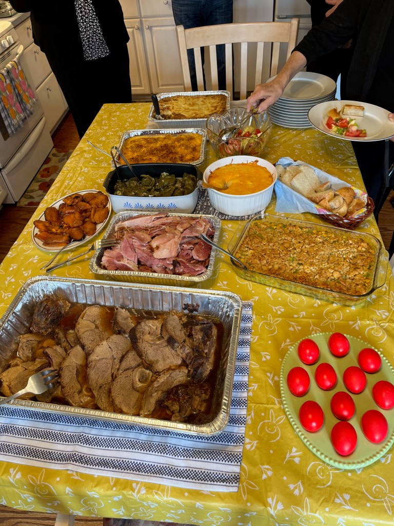 We had a pretty good spread for dinner. Let’s see there was lamb, sweet potatoes, Mac & Cheese, ham, pastichio (which is basically a Greek lasagna), and dolmathes (which is another Greek food that is a certain leaf stuffed with meat and rice. It’s really good!)