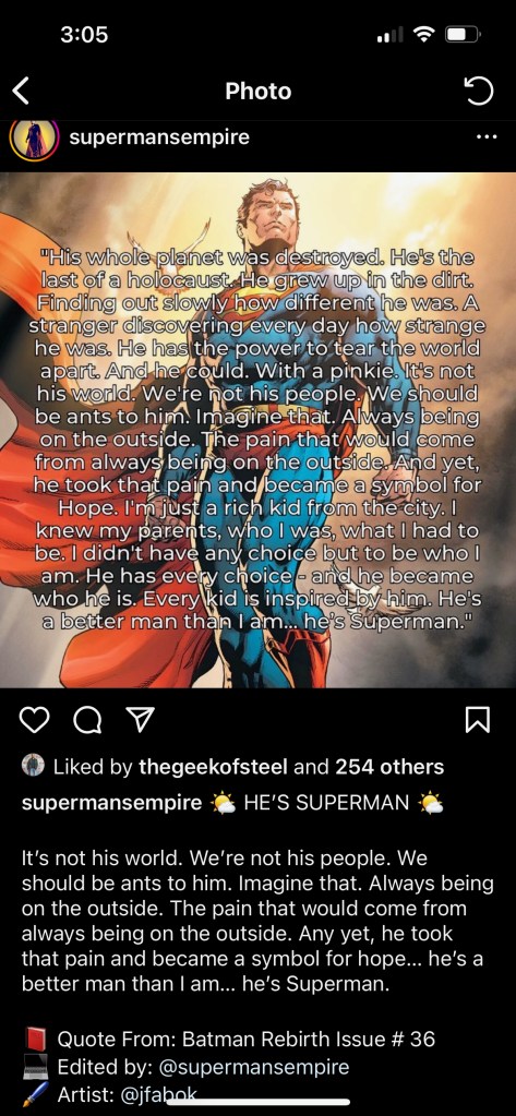 Here is a quote that gives a great explanation as to why Superman is so great, and it’s coming from Batman himself lol.