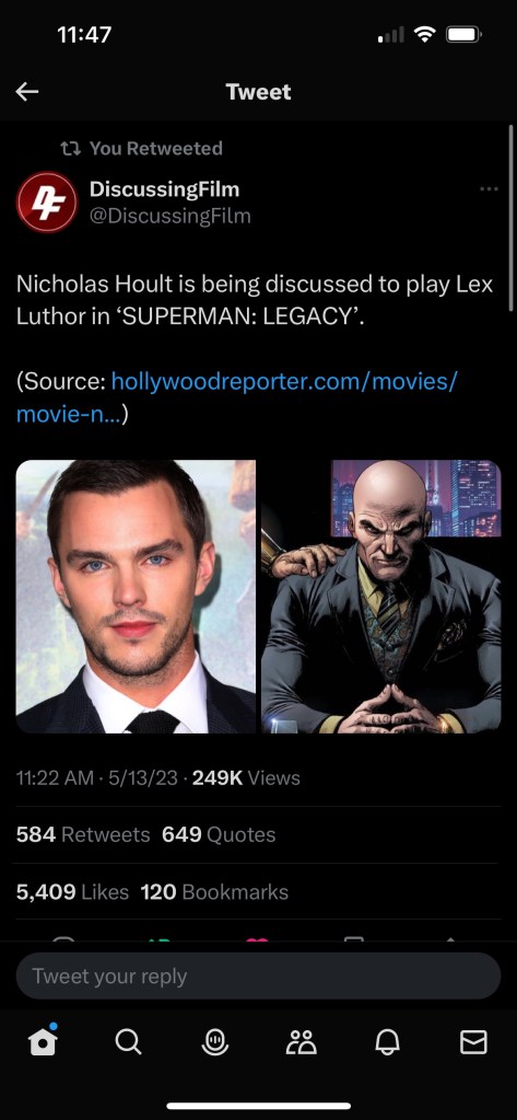 Finally, we have come to the big, bad villain, Lex Luthor. The HR states: “One role that seems to have only one person earmarked is the classic villain Luthor. Nicholas Hoult…has been tipped to play the bald – headed genius.” Apparently, his name has been going around Hollywood in connection to Superman: Legacy. So we will see what happens!