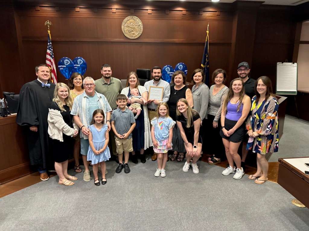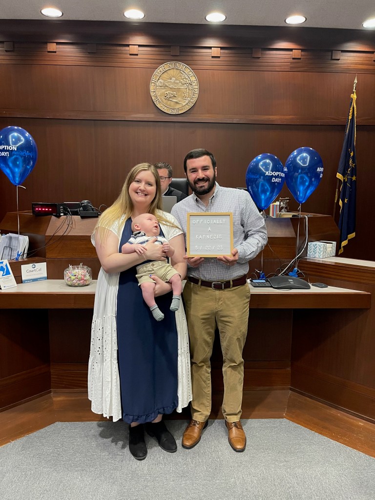 Today Baby Oliver officially became a part of our family. By officially, I mean legally. We had his final adoption hearing this morning down by Indianapolis, and we had so much family support! It was really special. Our friends from college even made the trip out there to be there for us and him.