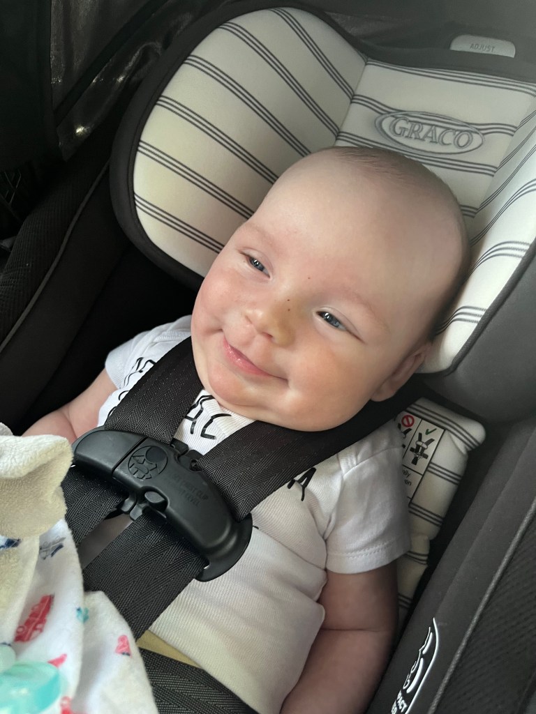 This was in the car on the way home. Look how happy he is! lol To tell you the truth, he was smiling at this giant bunny that sits in front of him. It has a camera for a nose so we can see him from up in the front of the car, but he loves it! Every time he gets in the car he wide – eyes it and then remembers he likes it and smiles. It’s adorable lol.