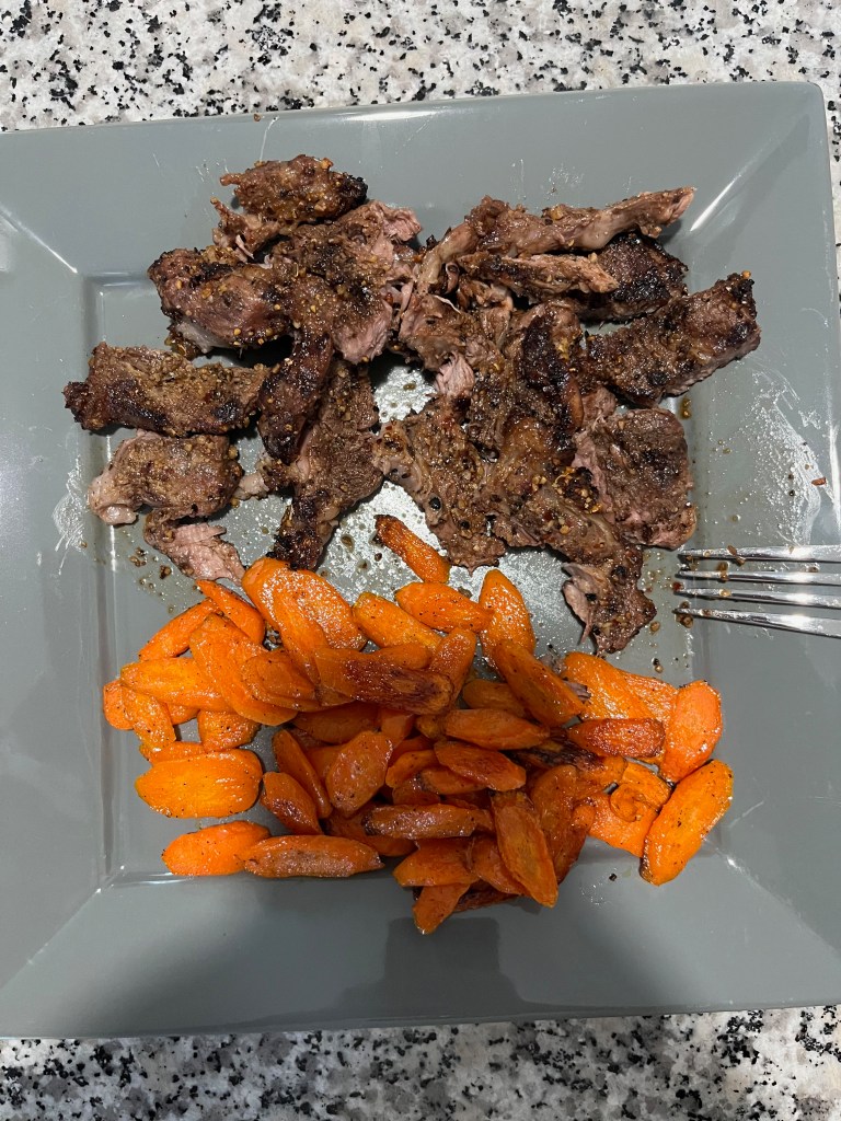 After my run Lea and I made dinner. I grilled the steaks and she roasted the carrots. It made for such a good dinner.