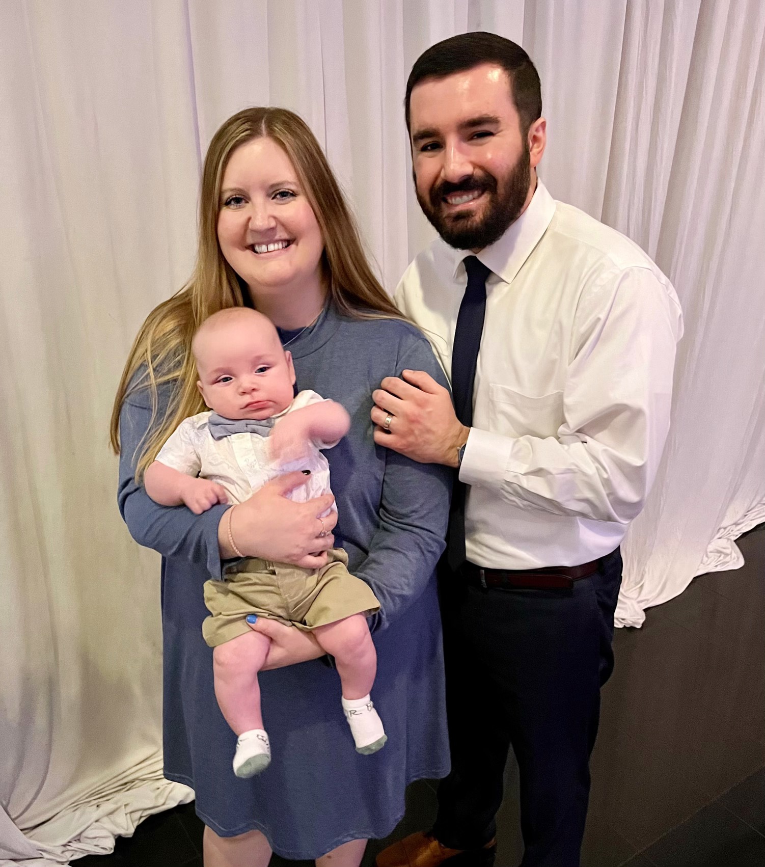 The first two pictures are at the church. The last one is of our little family at the luncheon! Oliver usually smiles, but he wasn’t in the mood at this time lol.
