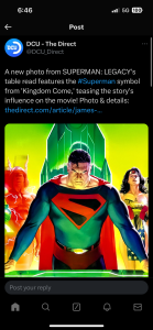 Miss Teschmacher herself posted one too lol. I honestly don’t care I think it’s hilarious. But Superman fans recognize that symbol. They know which comic that is from which gives everyone an idea of the direction and inspiration for the story of Superman: Legacy.