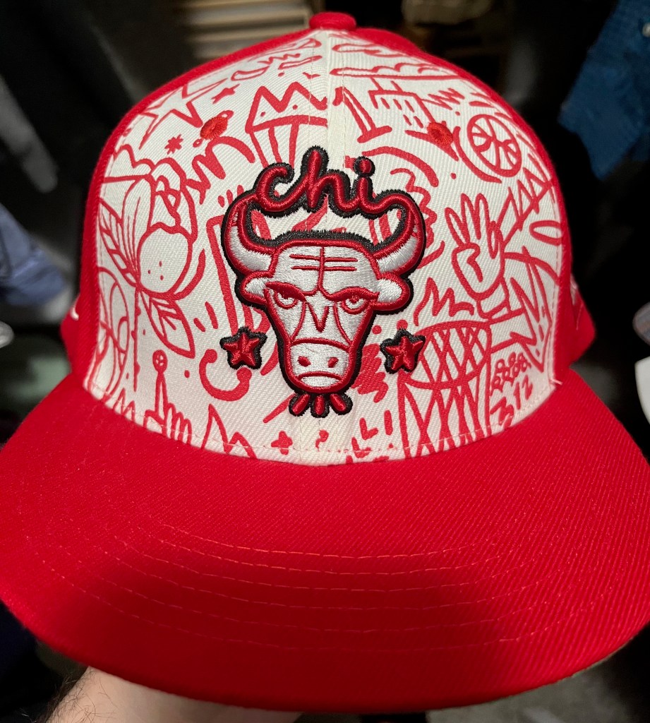 This was a free hat we received for showing up a little early to the Bulls game one time. The design was created by a local artist. I don’t remember who made it but if anyone sees this and recognizes the awesome art work let me know! It’s a really comfortable hat and it looks so cool.