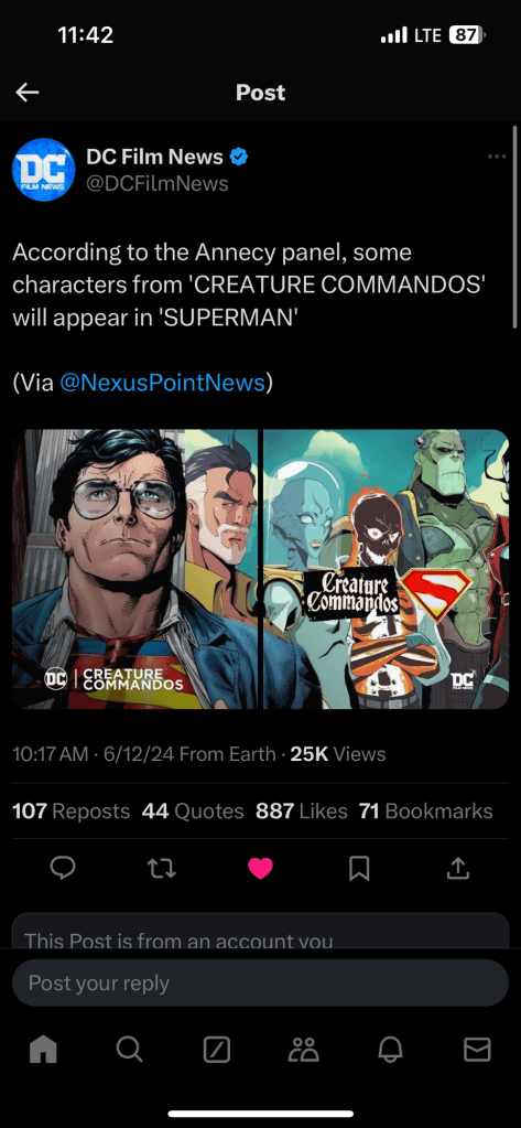 For example, characters from Creature Commandos will appear in the Superman movie next July: