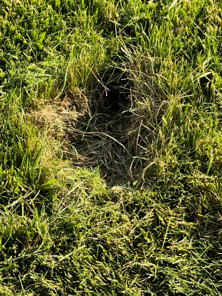 I went to cut the grass Friday after work, and found a couple of these holes in my back yard: