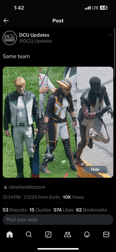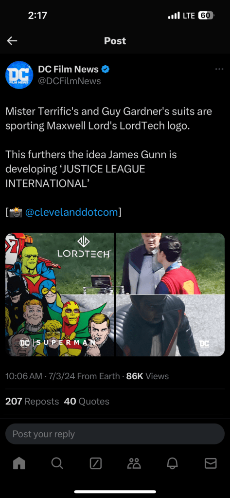Now if you noticed, besides Superman, they are all wearing the same Lord Tech logo. Which makes us fans on X think they may be corporate sponsored heroes, which Superman is definitely not. If true, it’ll be interesting to see how this all plays out!