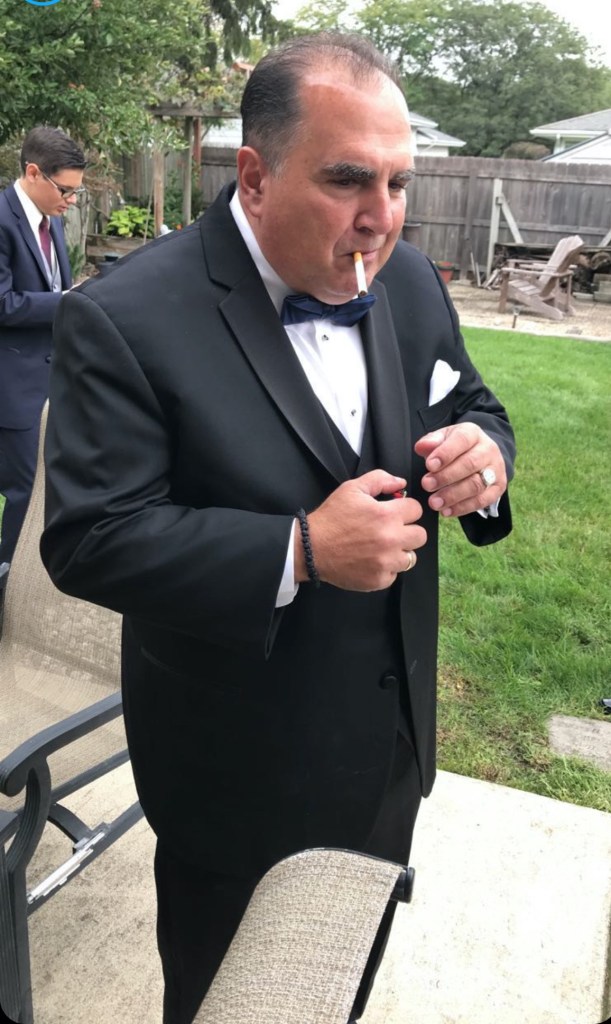(This pic is from my wedding day. I’ve always liked it and thought he looked cool. Kind of like Tony Soprano lol. I think this was when he was getting tired of all the pictures and needed a smoke break).