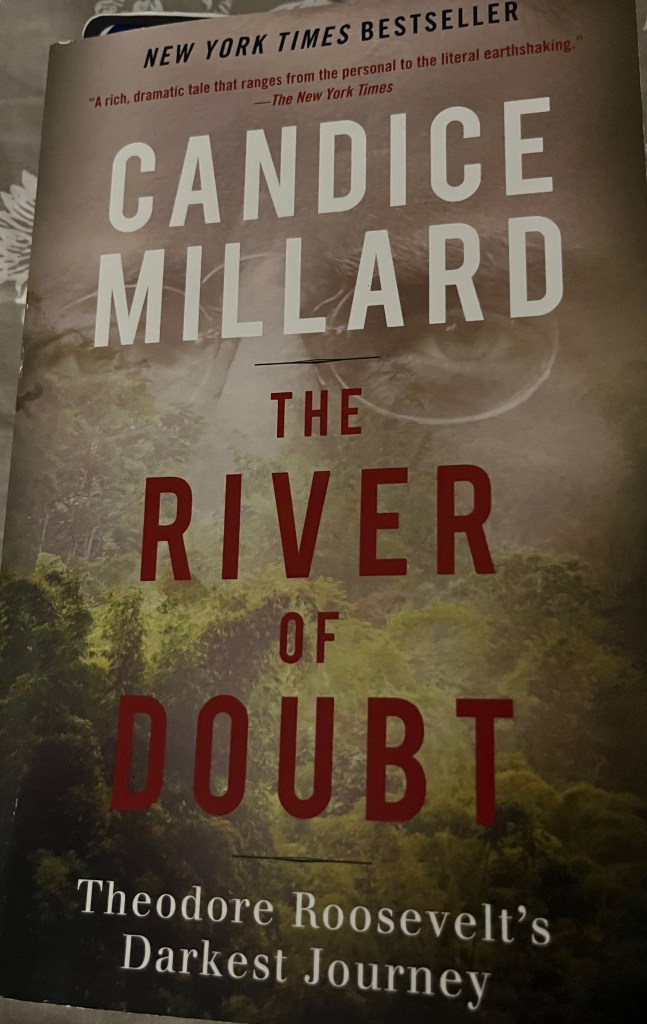 Here is the summary from the back cover: “The River of Doubt – it is a black, uncharted tributary of the Amazon that snakes through one of the most treacherous jungles in the world. After his humiliating election defeat in 1912, Theodore Roosevelt set his sights on the most punishing physical challenge he could find, the first descent of an unmapped, rapids – choked tributary of the Amazon…” It’s a longer summary of the book. I didn’t feel like writing it all lol. I’m only a couple chapters in but so far, I really enjoy it. In fact, I enjoy it so much that when I was on my walk Monday morning I couldn’t take my eyes off of it, which resulted in me almost walking into a parked car lol. Thank God I lifted my head up in time to see it. It was a really close call and would have been SO EMBARRASSING! Imagine if I had dented it with my face and I had to wake up whoever’s car it was to explain what happened? I’m cringing just thinking about it being a possibility that morning!