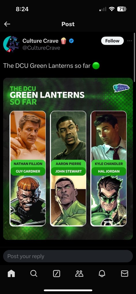Aaron definitely has his work cut out for him but I think he will do great. I haven’t seen anything he’s in (that I know of) but I’m hopeful and I’m trusting the process of DC Studios. This show is going to be so cool and I cannot wait for it! So far in the DCU we have three Green Lanterns.