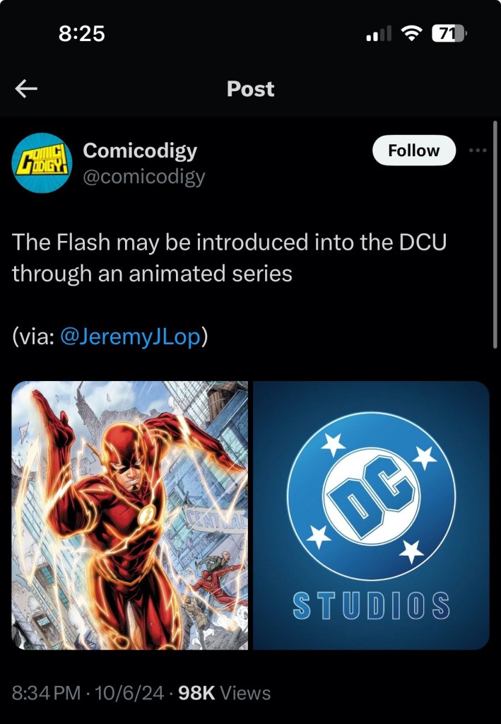 Shorter section here: The Flash may appear in an animated series. My guess is it will be a cameo and then lead into his own movie or series. Only time will tell.