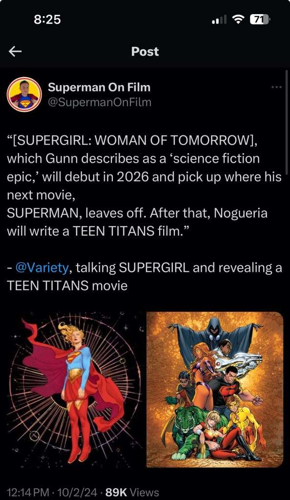 As the tweet says, there will also be a Teen Titans movie. There really isn’t any information on that movie yet. I’m not sure if it’s even been confirmed by James Gunn yet, but we will see lol. Both of these movies are going to be so exciting!
