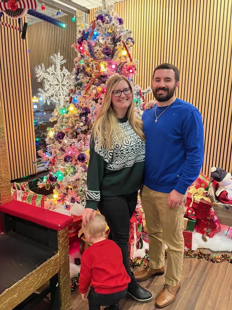 On Saturday I was not feeling too hot. Apart from being sore from my unfinished workout Friday, my throat was scratchy and I was very congested. Those darn kids…I tried to nap the first half of the day but I couldn’t fall asleep. That’s how I know I wasn’t actually becoming sick, so I was thankful for that. I was able to rest in bed for a few hours though so that was nice. On Saturday night me, Lea, Mr. O, my mom and my aunt went to dinner at this restaurant called Teibles. It’s a pretty nice place and they have great Christmas decorations. Mr. O was OBSESSED with the trains they had going in loops. We couldn’t get him away from them.