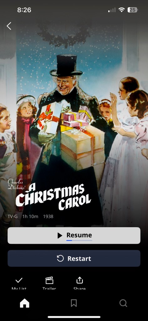It was the one from 1938 and I have to say it was really good. I don’t believe I’ve ever seen that one. My favorite version of this movie is from 1984, but you have to rent or buy it on Prime and I didn’t want to. The older movie was available for free on Max. It was quiet evening with a good movie. Couldn’t have asked for a better night!