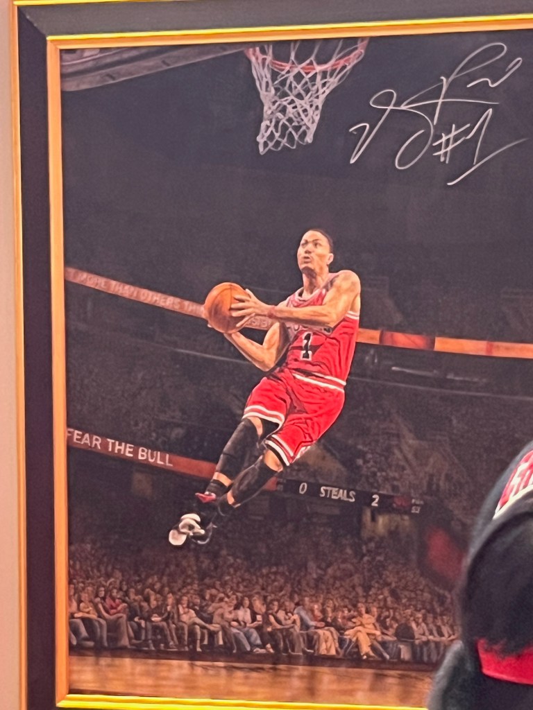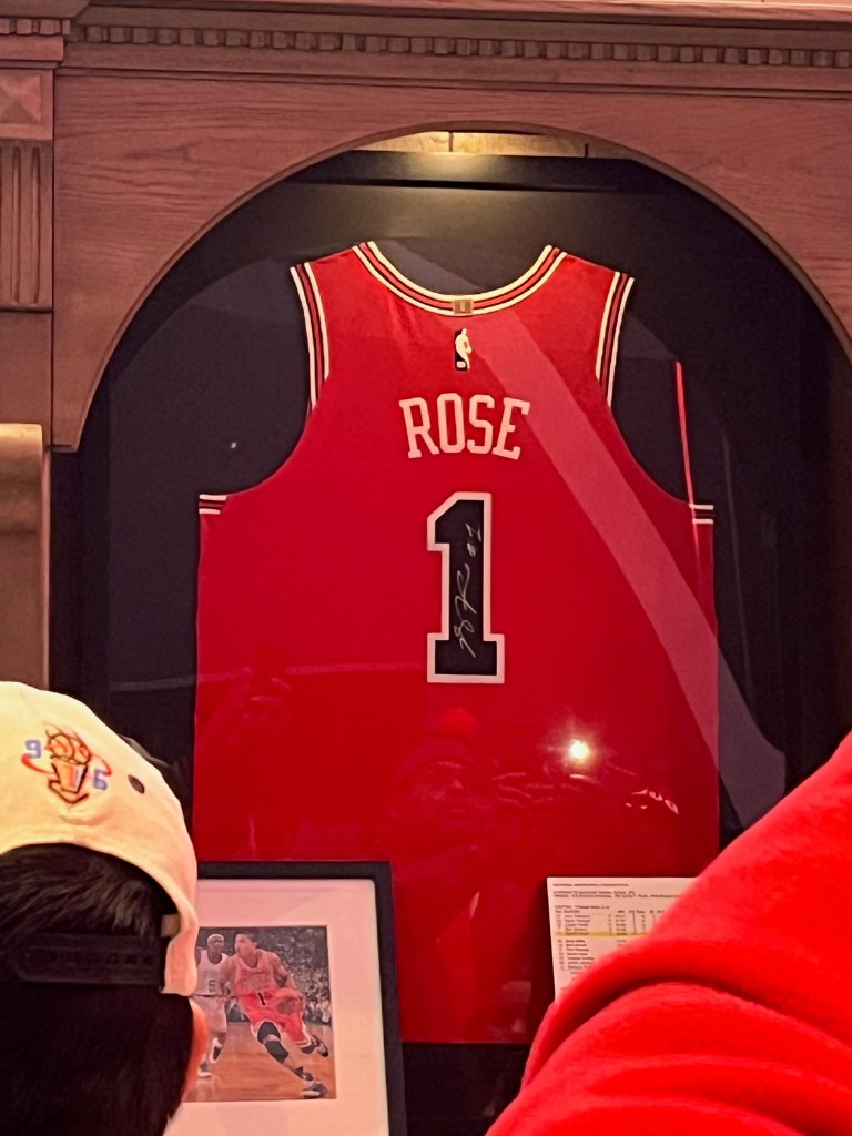 How sick is this?! I should mention it wasn’t three hundred or more dollars. Somehow, on our way out of the store, I saw this jersey and decided to take a look. To my surprise it was way, way cheaper than the others. So of course I had to buy it! I told Lea I’m going to wear this on Christmas Day next year lol and probably the year after that as well. Once we finished shopping and looking around at all the Derrick Rose accolades and pictures (see below)