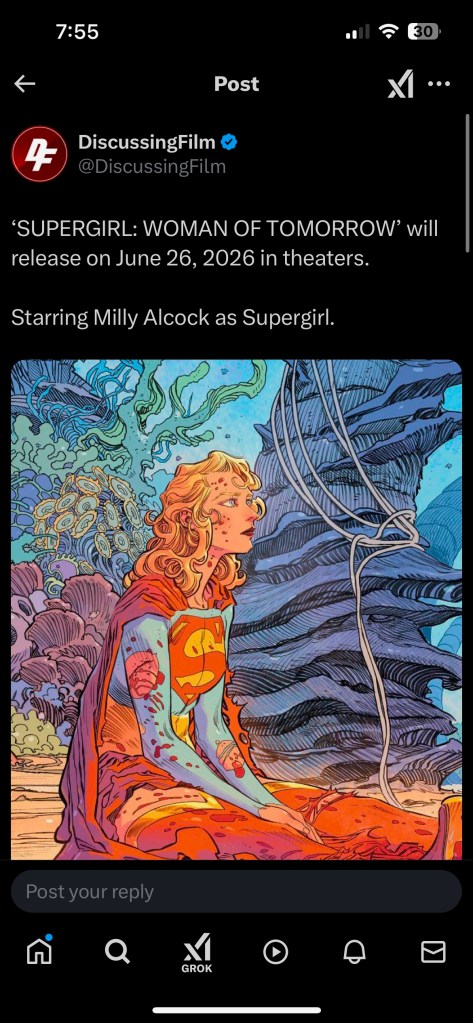 Supergirl: Woman of Tomorrow has reportedly starting filming earlier this month. It will be released in theaters on June 26th, 2026. Milly Alcock is all set to star as Kara, aka Supergirl. I’m really excited for this movie too. If it’s half as good as the story they’re basing it off of I’m going to be really happy and impressed. There haven’t been any set photos (yet) but there have been more casting announcements.