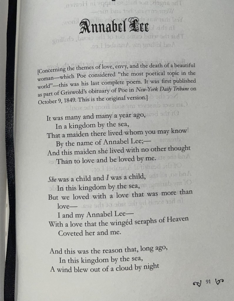 On Monday it was President’s Day so I had the day off. Mr. O slept in (thankfully) and it gave me time to do some reading. For the first time in a while I picked up my Edgar Allan Poe book I had bought last year. It has [I think] all of his stories, poems, etc. inside. It’s a really cool looking book too.