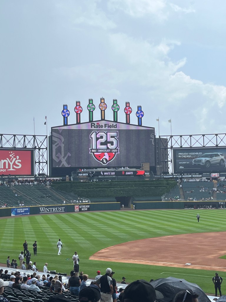 On Sunday Mr. O woke up before Lea and I. So when I got up I had to hurry and eat before I went to get him ready for the day. Once we were all downstairs, I took a drive to look for a new pair of sunglasses. I went to three different places and I could not believe they did not have any men’s sunglasses for sale. It was so strange to me. So I came home, rightfully (!) upset (Lea doesn’t think so), and then Lea went somewhere else and came home with a couple pairs for me to have. She’s the best. Then, my mom came over to watch Mr. O for a few hours while Lea and I drove up to the South Side of Chicago to watch the White Sox. It’s been a while since we’ve been to a game. It was so much fun! Our seats were in the shade, so the sun and rain didn’t bother us too much. The food was great (as always) and the game was really entertaining. They ended up winning by a few runs after being down almost half of the game. Here are some pics we took: