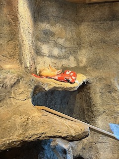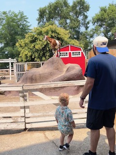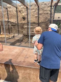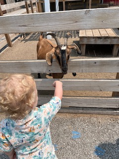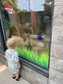 They also had a bear exhibit, which leads me to a funny story. The bear was asleep with its face up against the glass, and Mr. O walked up next to the bear’s face to take a picture, and before we knew it, the bear woke up suddenly. It scared the little man so much, but it was also really funny! Once he calmed down a bit, we continued walking around to see the rest of the exhibits the zoo offered. It’s a smaller zoo, so it was easy to navigate and was not tiring to get around. The zoo is very family-friendly, and another way they show that is with their Safari Train and Red Barn petting zoo. We did not do the safari train this time, but we did go into the Red Barn, and the kids were able to pet some of the animals. Overall, the experience was great. It wasn’t too crowded, the weather was fantastic, the animals were beautiful, and the kids had a great time, which is most important.
