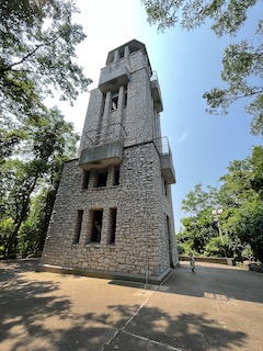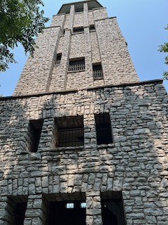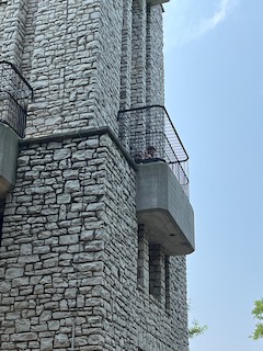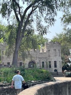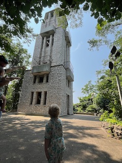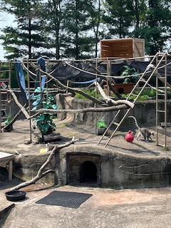 The board began using volunteers to build cages, pens, and walkways (1). In 1934, the zoo’s first major project was created: Monkey Island. The zoo’s website states, “This consisted of a center-moated island with a high exterior wall and access tunnel.” After Monkey Island was completed, other buildings followed. Two of them are currently landmarks: The Observation tower, which sits on top of a sand dune and overlooks the Lake, and a smaller castle building that houses the small mammals, birds, and reptiles. This was built in 1937. On a personal note, the Observation tower was cool, but also a pain in the butt to get to. It has tons of steps, and when you’re carrying a thirty-six-pound toddler (because I thought it was faster to hold him and climb), it made the walk ten times worse! It was worth it, though, because Mr. O loved being up there. We didn’t climb to the top of the tower, but just being up there was a great experience.