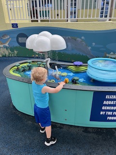 They also had a cool section where you could press buttons and try to solve interesting little experiments, but it’s for older children, so Mr. O found little-to-no interest in it yet. Needless to say, our trip lasted about thirty minutes, and it was only 10:30 in the morning, lol. Thankfully, we spent some time in the gift shop (We bought him three new dinosaur toys) and spoke with the employee there, who was kind enough to recommend another place to take Mr. O when we left the science center. She said to take him to Loggerhead Marinelife Center. It’s an ocean and sea turtle conservation, and it was really cool. They don’t charge you an entrance fee, but you can donate at the door (which we did).