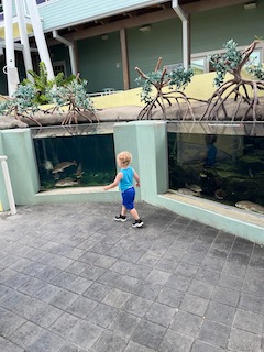 When Friday morning came around we were a little bummed, since it was our last full day in Florida, but we were also excited because we had fun things planned. First, we watched the movie Minions after we woke up. We ate breakfast and planned our day out. Then, we took Mr. O to the Cox Science Center and Aquarium. He had an amazing time looking at all the fish!