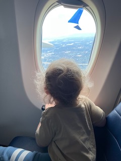 Once we boarded the plane (which he loved doing) we found our seats and realized how lucky we were that United had screens on the back of every seat. We never United, Lea and I usually fly Southwest, but I think that is going to change. The employees were all so kind, and the TV’s were so great in keeping Mr. O content and happy. We turned on Bluey, but had to figure out how to turn it back to English because Mr. O clicked Spanish when the screen asked which language he wanted to use. Neither of us speak spanish so it took a few minutes to figure out, lol.