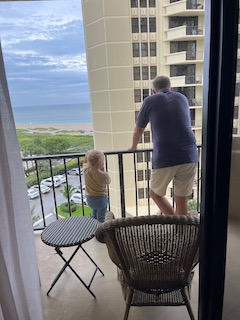 In the early hours of Wednesday morning, Mr. O was tossing and turning all night from bad dreams. He was randomly waking up screaming “No! No!” and we think he was dreaming about us putting him back in the pack-and-play. Once the sun rose over the ocean (we had a fantastic view), we all got out of bed to start our day.