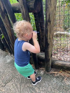 Yes, he is using binoculars my aunt bought him in the gift shop, and yes, he is using them backwards. Also, yes, he hasn’t stopped using them backwards even though we’ve told him all week that he’s using them wrong.